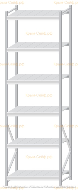- Легко собираемая и разбираемая конструкция, которая состоит из вертикальных рам (оцинкованные), закрепленных на них горизонтальных балок (окрашенные) и разборных полок (оцинкованные).