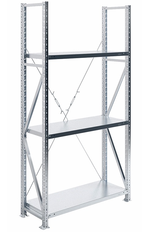 - Нагрузка на одиночную секцию стеллажа до 1000кг (с одним комплектом крестовин)