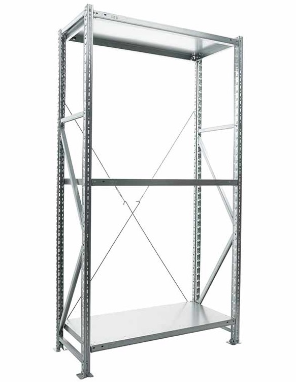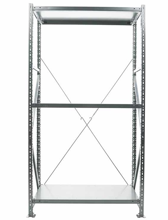 - Нагрузка на одиночную секцию стеллажа до 1000кг (с одним комплектом крестовин)