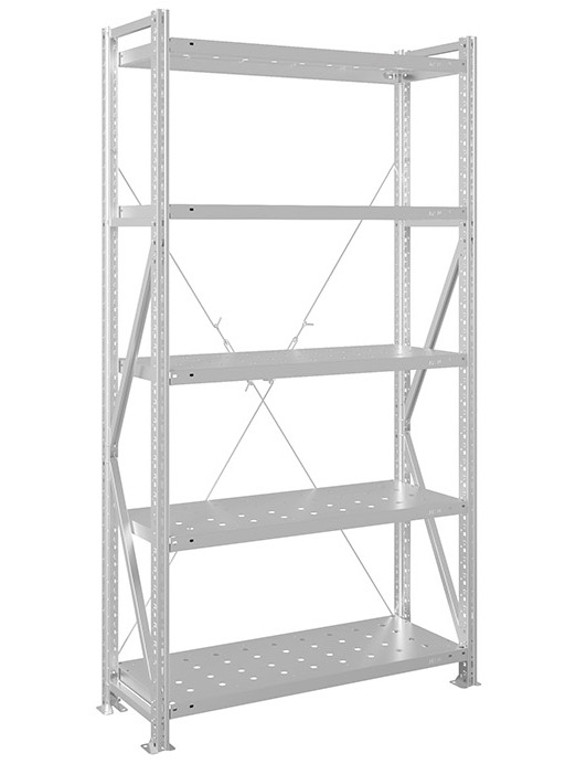 - Нагрузка на одиночную секцию стеллажа до 1000кг (с одним комплектом крестовин)