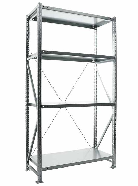 - Нагрузка на одиночную секцию стеллажа до 1000кг (с одним комплектом крестовин)