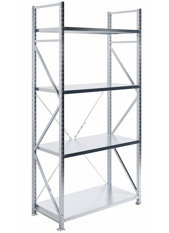 Безболтовой среднегрузовой стеллаж MS U предназначен для использования как на складах и производствах, так и в небольших помещениях – торговых точках и кладовых.