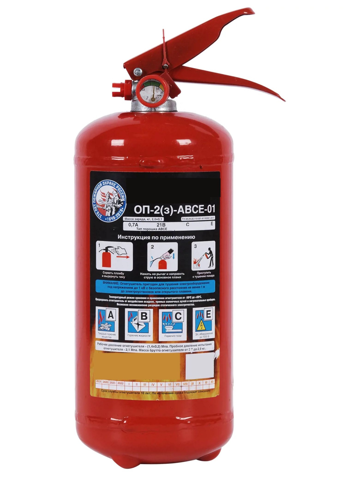 Пожарная безопасность объекта находится в руках владельцев и ответственных лиц. Сегодня любое помещение переполнено электрическими приборами, которые повышают риск возникновения возгораний. Для пресечения распространения пламени, защиты имущества и предотвращения человеческих жертв необходимо оснащать здания и предприятия средствами первичного пожаротушения. Выбор конкретного инвентаря зависит от типа, размера помещения и потенциально пожароопасных предметов. Универсальным средством для объектов небольшой площади является огнетушитель порошковый. Цифра «2» в маркировке обозначает массу заряда в килограммах.