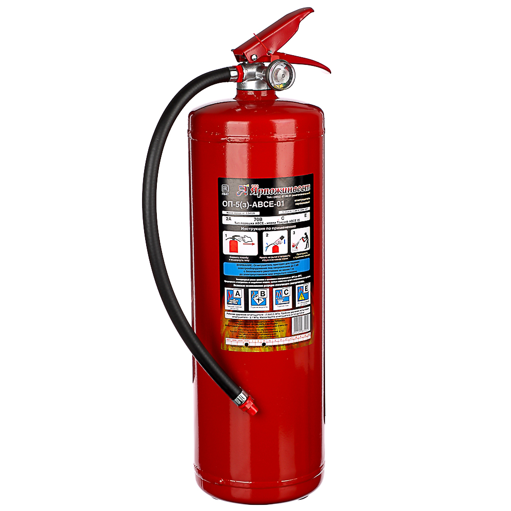Огнетушитель порошковый ОП-5 АВСЕ предназначен для тушения пожаров классов:
