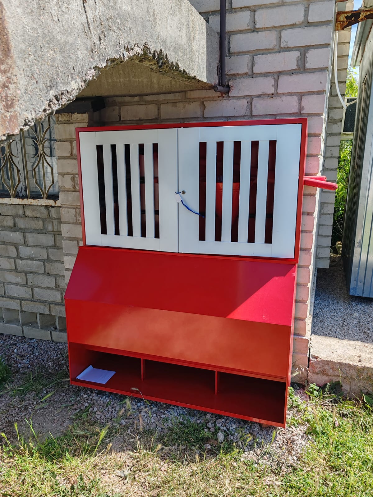 Закрытая конструкция из металла надёжно защищает оборудование от осадков, пыли и постороннего доступа, обеспечивая готовность к использованию и долговечность эксплуатации.