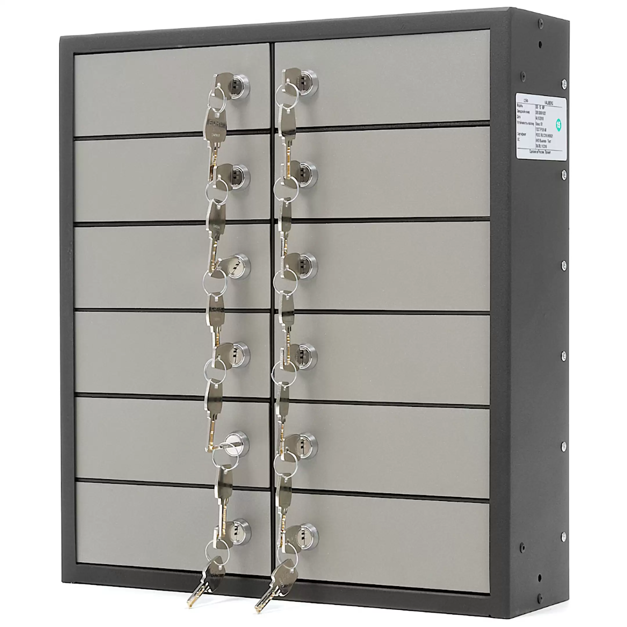 предназначены для оборудования хранилищ в банках и камер хранения в гостиницах толщина лицевой панели ячейки - 3 мм комплектуются двухключевыми замками (банк + клиентский) с одной скважиной KABA MAUER, с перенастраиваемым замком банка порядок нумерации ячеек указывается при размещении заказа возможна комплектация ячеек металлическими кассетами с устройством для опечатывания внешняя отделка дверей ячеек, окраска под алюминий