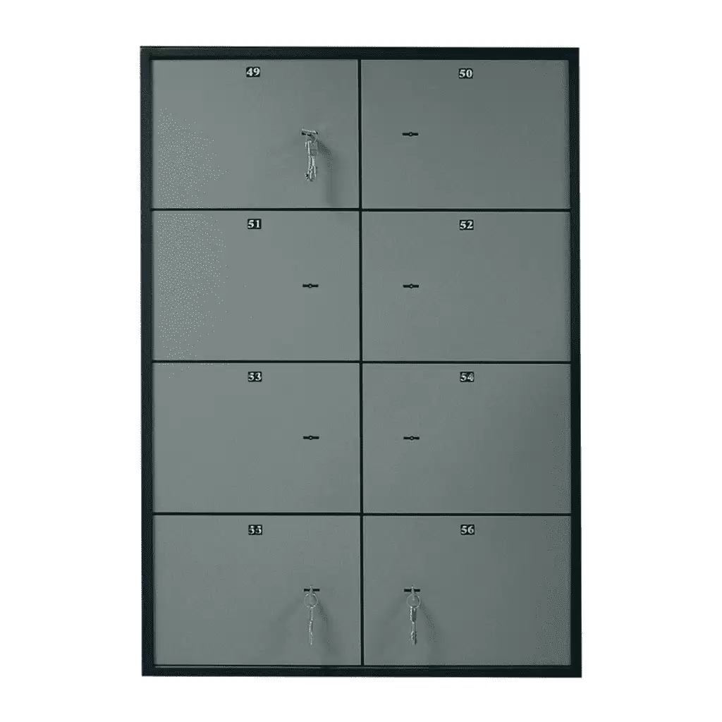 предназначены для оборудования хранилищ в банках и камер хранения в гостиницах толщина лицевой панели ячейки - 3 мм комплектуются двухключевыми замками (банк + клиентский) с одной скважиной KABA MAUER, с перенастраиваемым замком банка порядок нумерации ячеек указывается при размещении заказа возможна комплектация ячеек металлическими кассетами с устройством для опечатывания внешняя отделка дверей ячеек, окраска под алюминий