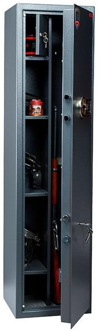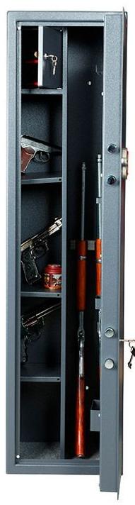предназначены для хранения огнестрельного оружия сейфы соответствуют требованиям ст.59 Постановления правительства РФ № 814 от 21 июля 1998 года «О мерах по регулированию гражданского и служебного оружия и патронов к нему на территории РФ» толщина металла корпуса и двери – 3 мм оборудованы патронным отделением, запирающимся на ключ, полками и ложементами для ружей комплектуется электронным кодовым замком + ключевой наличие анкерных отверстий для крепления сейфа к стене