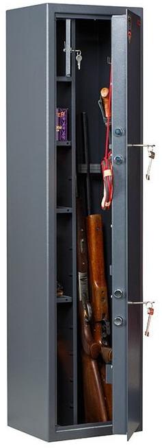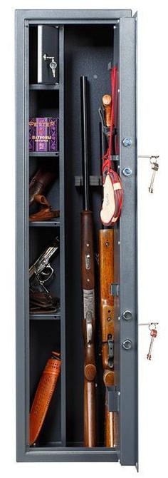 предназначены для хранения огнестрельного оружия сейфы соответствуют требованиям ст.59 Постановления правительства РФ № 814 от 21 июля 1998 года «О мерах по регулированию гражданского и служебного оружия и патронов к нему на территории РФ» толщина металла корпуса и двери – 3 мм оборудованы патронным отделением, запирающимся на ключ, полками и ложементами для ружей комплектуется двумя ключевыми замками наличие анкерных отверстий для крепления сейфа к стене