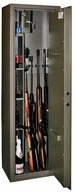 Внешн. размеры, мм *: 1500x450x350 Внутр. размеры, мм *: 1495х290х287 Вес, кг **: 88 Внутренний объем, л: 125/7 Количество полок: 3 Высота ружей, мм: 1450 Количество стволов: 4 Тип замка: Ключевой Класс взломостойкости: 0 Производитель: VALBERG (Россия) Гарантия, лет: 5 Цвет: Корпус - оттенок коричневого с эффектом молотковой эмали, дверь - оттенок зелёного Оружейный сейф Valberg Сафари — Предназначается для надёжного и комфортного размещения четырёх единиц оружия со стволами не длиннее 1,45 м.— По итогам тестов на степень устойчивости к взлому отнесён к классу 0 в соответствии с ГОСТ Р 50862-2005. — Корпус изготавливается из стальных листов не менее трёх миллиметров толщиной. — Коробчатую дверь, подвешенную на внутренних петлях, усиливает лицевая панель порядка пяти-шести миллиметров. — Дверь снабжена ключевым замком высокой секретности KABA MAUER (class A, ECB-S) немецкого производства. Прочное запирание обеспечивается трёхсторонним ригельным механизмом. Защиту замковой области и ригелей от вскрытия слесарными инструментами осуществляет металлическая пластина из специального твёрдого сплава. — В сейф встроен трейзер – патронное отделение, снабжённое собственным ключом. — Для максимального удобства при хранении ружей имеются роликовые зажимные ложементы. — Комплектация включает съёмные полочки с регулировкой по высоте, а также рамку для размещения ножей и гребёнку для шомполов и ключей, прикреплённые к двери изнутри. — Дно покрыто мягким ковролиновым ковриком. — Изделие сконструировано исходя из требований ст.59 Постановления правительства РФ № 814 от 21 июля 1998 года «О мерах по регулированию гражданского и служебного оружия и патронов к нему на территории РФ». — С целью повышения надёжности и устойчивости изделия рекомендовано крепление к полу или стене посредством имеющихся в корпусе анкерных отверстий. |