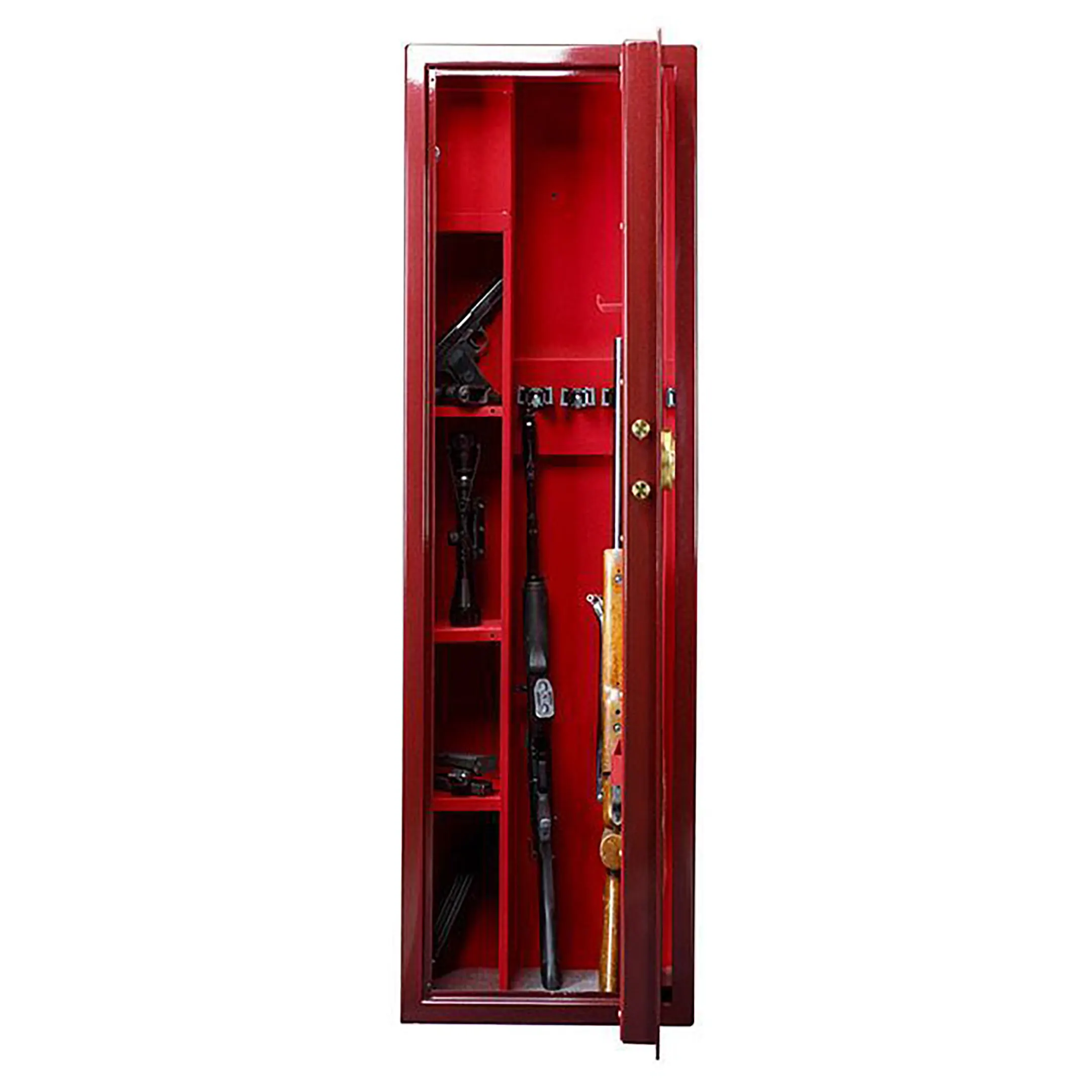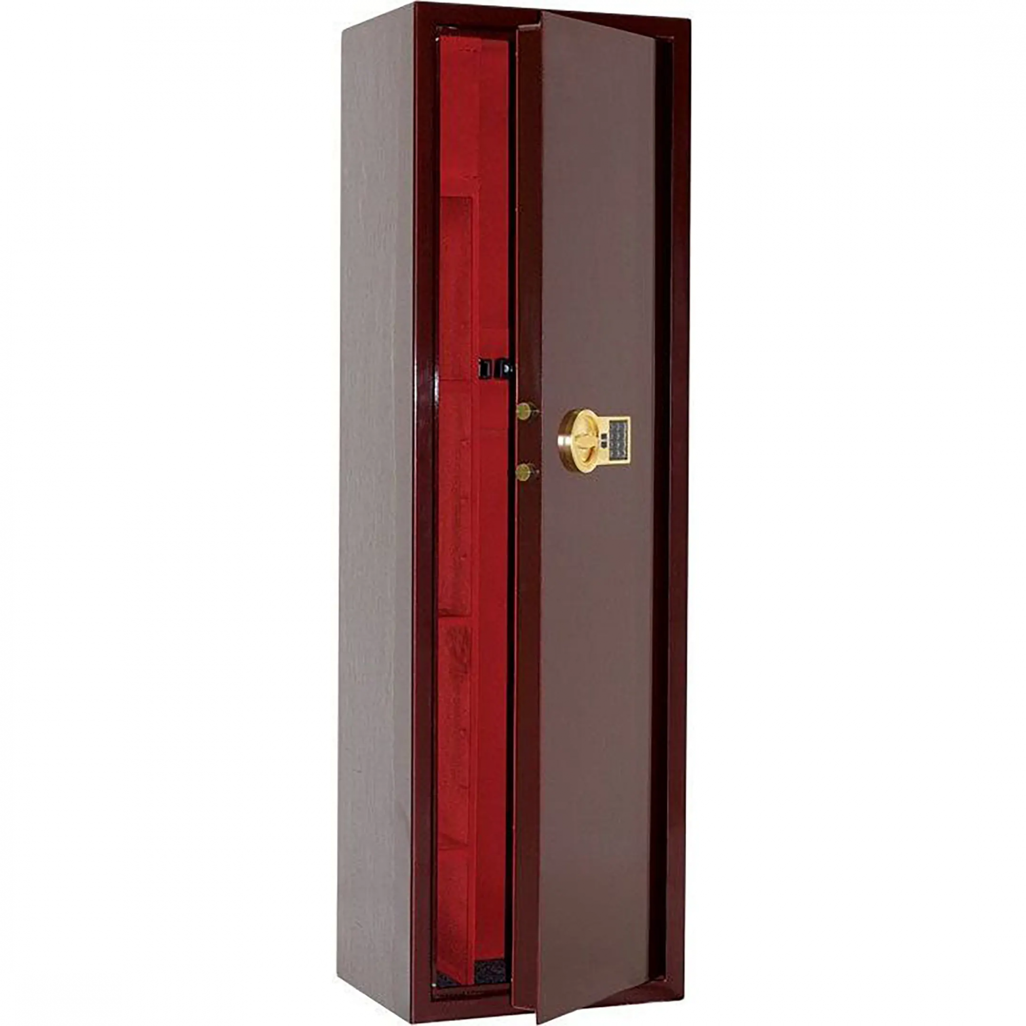 предназначены для хранения огнестрельного оружия комплектуются электронными замками PS 300 (ПРОМЕТ), покрытыми 24-каратным золотом (Gold) устойчивость к взлому: ГОСТ Р 55148-2012, класс S1, соответствует классу оружейных сейфов А1 в соответствии с требованиями ГОСТ Р 56367-2015 3-х сторонняя ригельная система запирания защита замка и ригелей от высверливания и выбивания оборудованы патронным отделением, запирающимся на ключ и ложементами для ружей предусмотрена возможность анкерного крепления к полу и стене тип покрытия: лак, внутренняя отделка – бархат базовые цвета: черный, вишня. Возможна окраска в другие цвета по согласованию с производителем любой сейф из номенклатуры ПРОМЕТ может быть исполнен в комплектации GOLD по специальному запросу