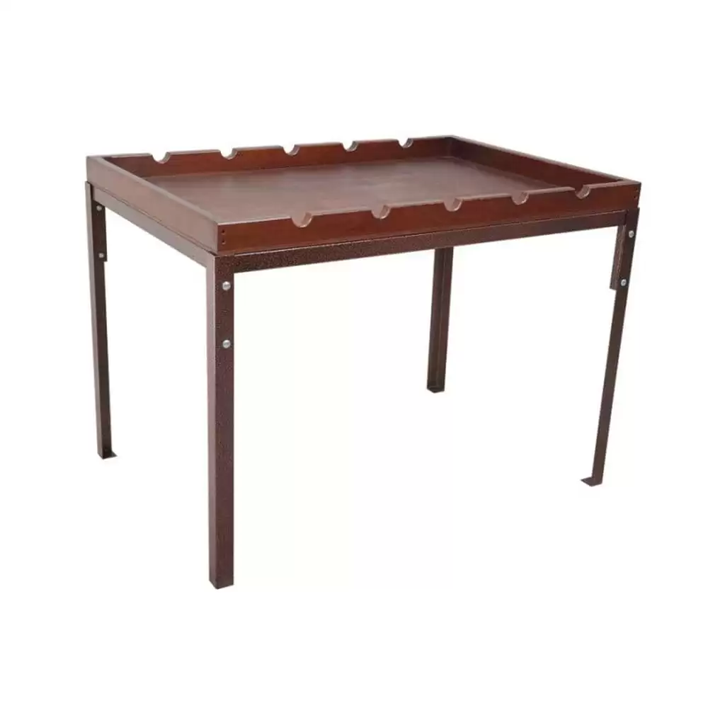 Стол предназначен для проведения регламентных работ с оружием. Столешница выполнена из влагостойкой фанеры толщиной 10 мм и оборудована деревянной отбортовкой с пазами для комфортной работы с огнестрельным оружием.Стол изготавливается со съемными ножками.Цвет основания: Медь