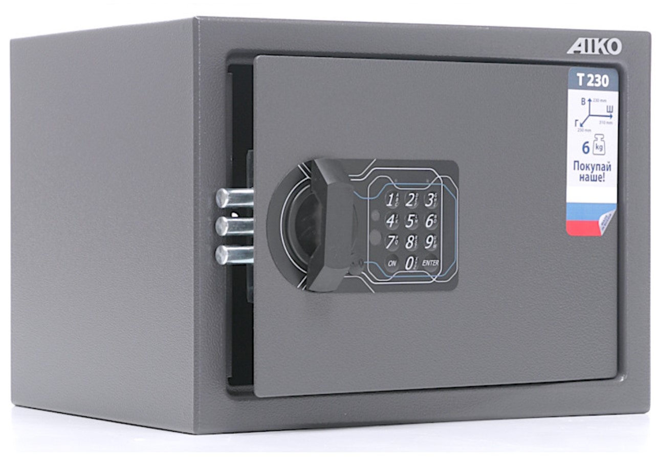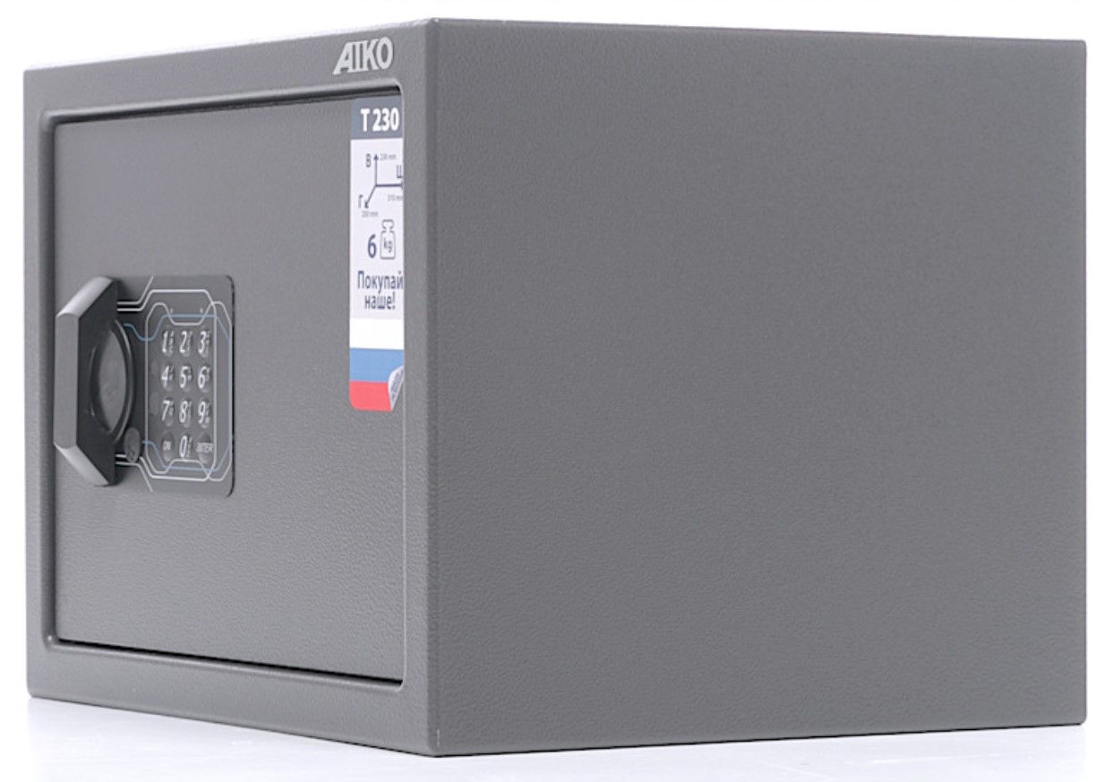 Сейф AIKO T-230 EL - предназначен для хранения незначительных ценностей, небольшой суммы денег, документов и личного огнестрельного оружия.