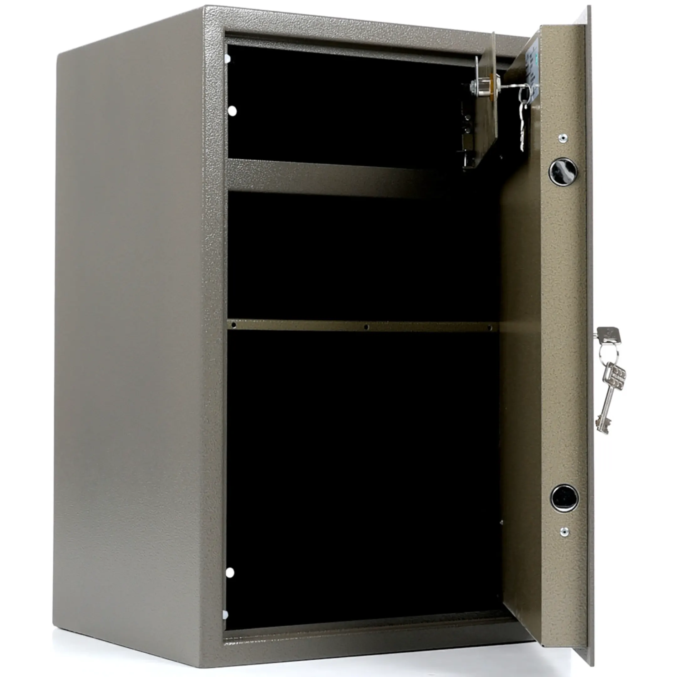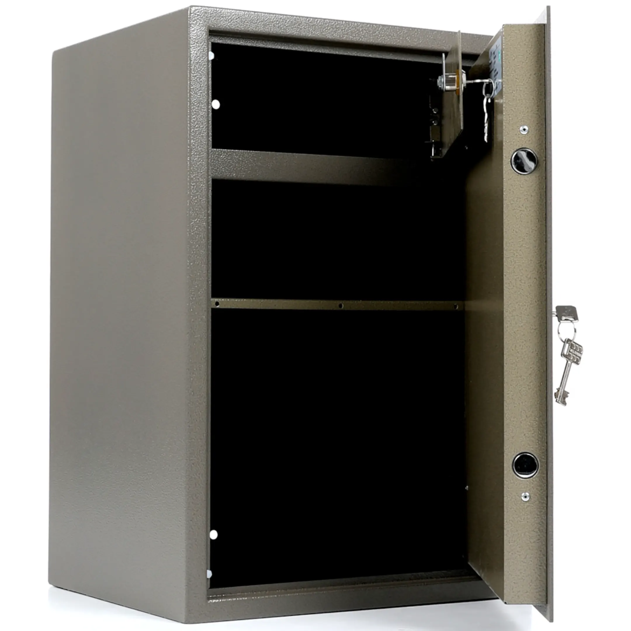 Имеются технологические отверстия для крепления сейфа к полу и стене.