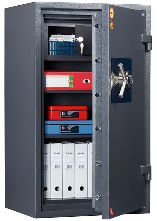 Сейф Valberg Гарант Евро 120Т EL Предназначен для сохранности документов и ценностей при пожаре и взломе. Рекомендованная сумма хранения денег до 6.5 млн. руб. для физических лиц и до 2 млн. руб. для юридических лиц. Устойчивость к взлому по ГОСТ Р 50862-2017: класс 2 (ГОСТ Р).
