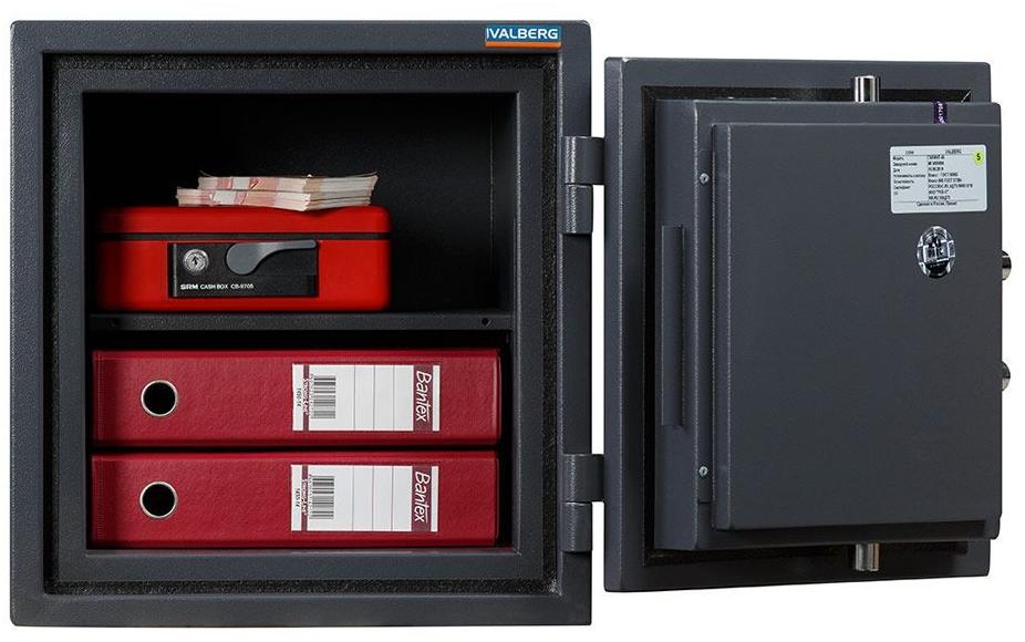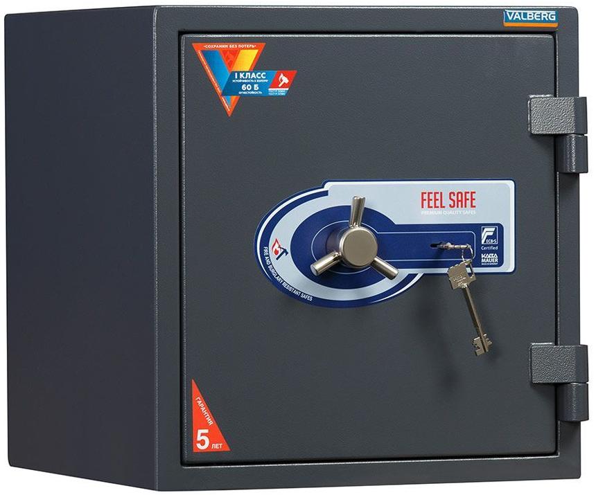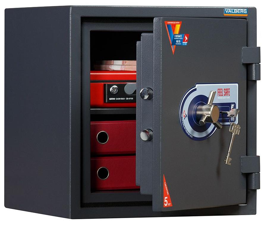 Сейф огневзломостойкий, производство - Россия. Устойчивость к взлому класс 1 и на класс 60Б (60 минут защиты от пожара) защиты от пожара по ГОСТ Р 50862-2005. Корпус сейфа представляет собой двухслойную конструкцию с наполнением. Межстеночное пространство заполнено запатентованным составом огнестойкого бетона. Корпус сейфа выполнен из стали, толщина боковых стенок 56 мм, общая толщина двери 92 мм. Замок ключевой Kaba Mauer (Германия). 3-х сторонняя ригельная система запирания. Защита замка и ригелей от высверливания и выбивания. Система блокировки ригельного механизма при выбивании замка. По периметру дверной проем проклеен огнестойким уплотнителем. Внутри сейфа 1 полка. Возможно крепление к полу (наличие отверстия в нижней части). Окрашен порошковой краской, цвет: графит структурированный. Гарантия 5 лет
