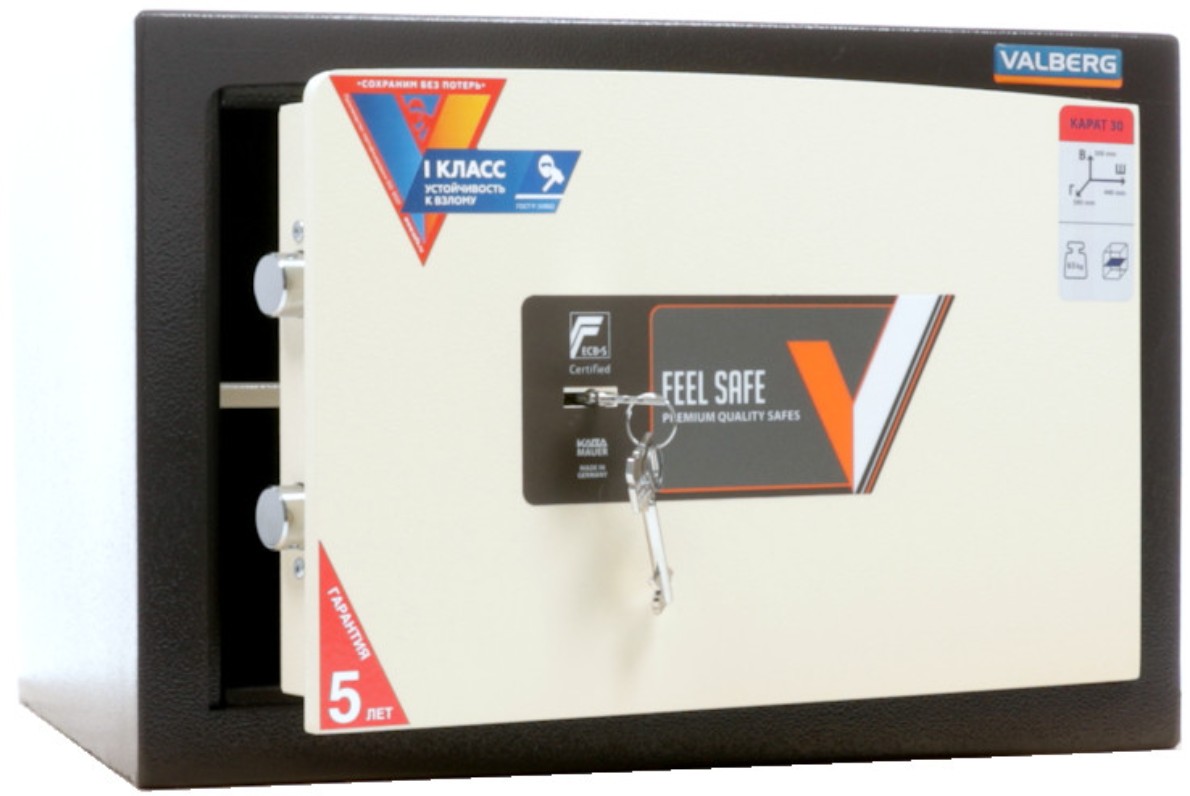 Сейф Valberg Карат ASK 30 NEW - предназначен для защиты ценностей и документов от несанкционированного доступа (взлома). Рекомендованная сумма хранения наличных денег до 2 млн. руб. для физических лиц и до 500 тыс. руб для юридических лиц