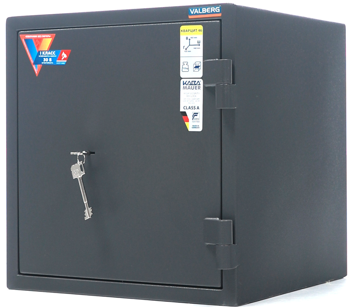 Сейф Valberg Кварцит 46 - предназначен для защиты ценностей и документов от несанкционированного доступа (взлома). Рекомендованная сумма хранения наличных денег до 1 млн. руб. для физических лиц.