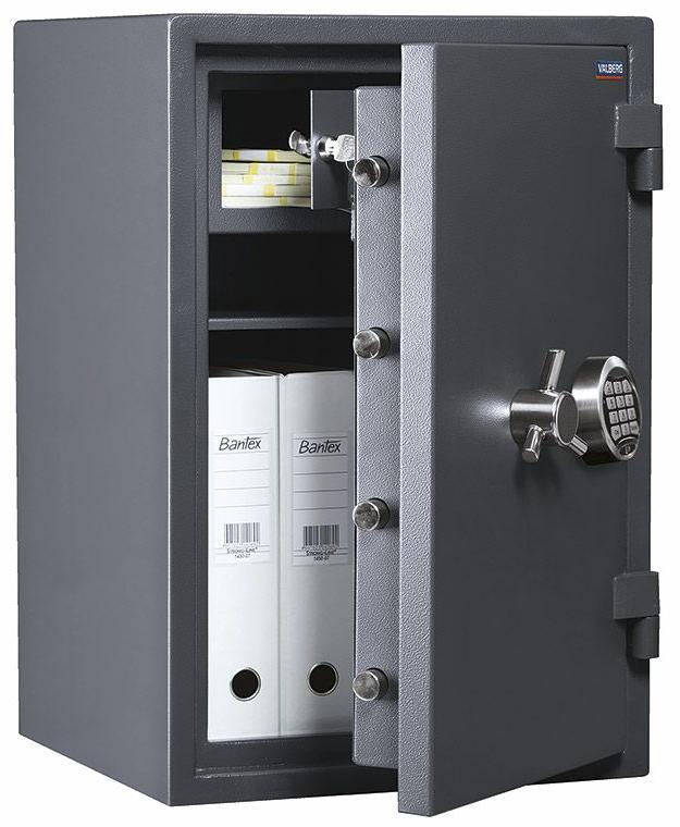 предназначены для защиты документов и ценностей от несанкционированного доступа (взлома) рекомендованная сумма хранения денег до 5 млн. руб. для физических лиц и до 2 млн. 500 тыс. руб. для юридических лиц устойчивость к взлому по ГОСТ Р 50862-2012: класс 1 (РСБ-С); класс 2 (ГОСТ Р) огнестойкость по ГОСТ Р 50862-2012: класс 30Б (РСБ-С), класс 30Б (ГОСТ Р) при заливке двери и корпуса сейфа используется специальный тяжелый бетон корпус сейфа и дверь заливные; толщина стенок - 40 мм 3-х сторонняя усиленная ригельная система запирания защита замка и ригелей от высверливания и выбивания система блокировки ригельного механизма при выбивании замка огнестойкость обеспечивают термоактивные прокладки комплектуются кодовым электронным замком PS 600 (ПРОМЕТ) наличие анкерного крепления к полу. Анкерный болт в комплекте