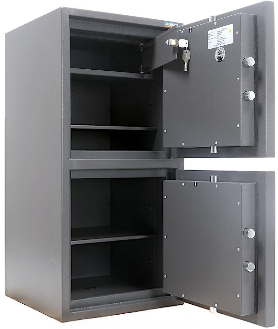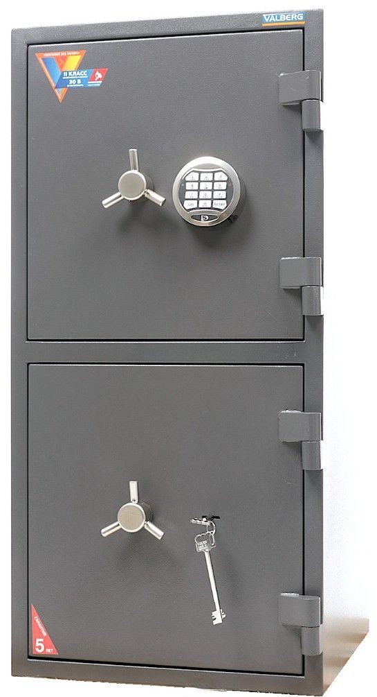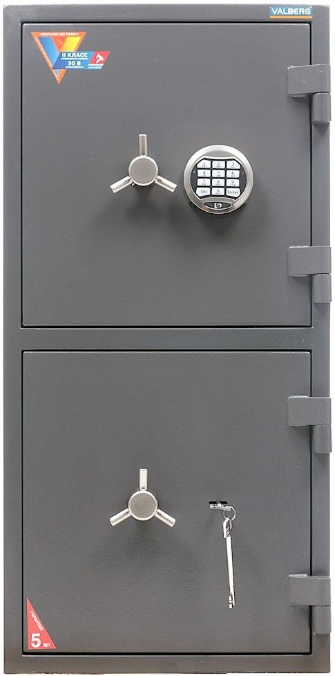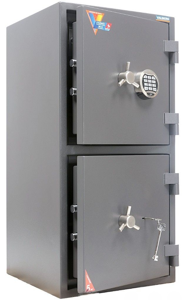предназначены для защиты документов и ценностей от несанкционированного доступа (взлома) рекомендованная сумма хранения денег до 5 млн. руб. для физических лиц и до 2 млн. 500 тыс. руб. для юридических лиц устойчивость к взлому по ГОСТ Р 50862-2012: класс 1 (РСБ-С); класс 2 (ГОСТ Р) огнестойкость по ГОСТ Р 50862-2012: класс 30Б (РСБ-С), класс 30Б (ГОСТ Р) при заливке двери и корпуса сейфа используется специальный тяжелый бетон корпус сейфа и дверь заливные; толщина стенок - 40 мм 3-х сторонняя усиленная ригельная система запирания защита замка и ригелей от высверливания и выбивания система блокировки ригельного механизма при выбивании замка огнестойкость обеспечивают термоактивные прокладки комплектуются кодовым электронным замком PS 600 (ПРОМЕТ). На сейфы с двумя дверями электронный замок устанавливается только на верхнюю дверь, на нижней двери ключевой замок наличие анкерного крепления к полу. Анкерный болт в комплекте