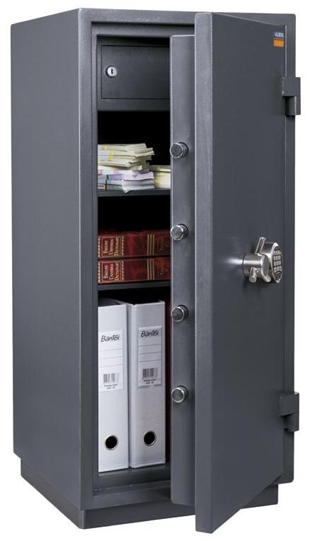 предназначены для защиты документов и ценностей от несанкционированного доступа (взлома) рекомендованная сумма хранения денег до 5 млн. руб. для физических лиц и до 2 млн. 500 тыс. руб. для юридических лиц устойчивость к взлому по ГОСТ Р 50862-2012: класс 1 (РСБ-С); класс 2 (ГОСТ Р) огнестойкость по ГОСТ Р 50862-2012: класс 30Б (РСБ-С), класс 30Б (ГОСТ Р) при заливке двери и корпуса сейфа используется специальный тяжелый бетон корпус сейфа и дверь заливные; толщина стенок - 40 мм 3-х сторонняя усиленная ригельная система запирания защита замка и ригелей от высверливания и выбивания система блокировки ригельного механизма при выбивании замка огнестойкость обеспечивают термоактивные прокладки комплектуются кодовым электронным замком PS 600 (ПРОМЕТ) наличие анкерного крепления к полу. Анкерный болт в комплекте
