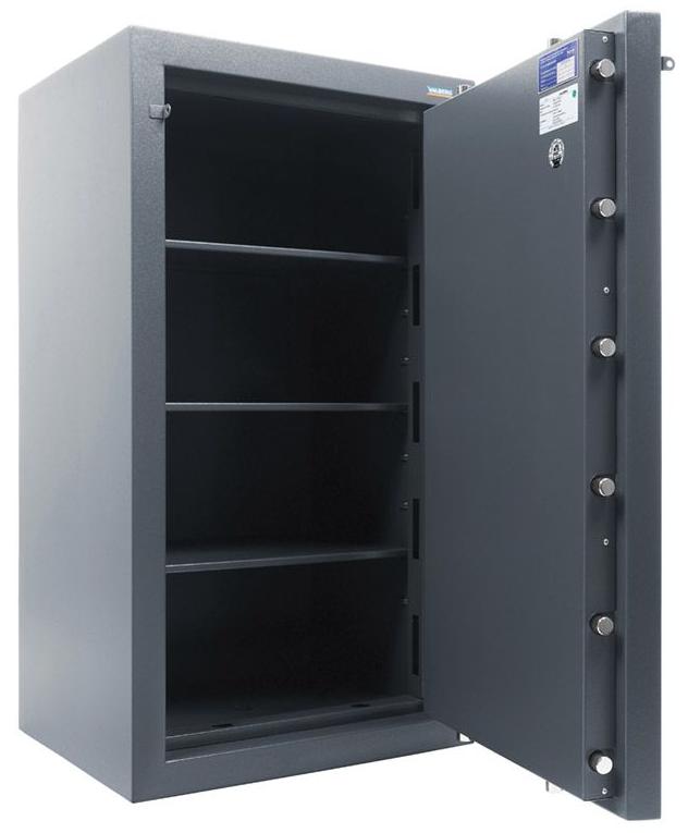 предназначены для защиты документов, ценностей, а также наркотических средств и психотропных веществ от несанкционированного доступа (взлома) одобрены ассоциацией Российских производителей и поставщиков сейфов и банковских систем безопасности включен в список товаров, поставляемых в СБ РФ рекомендованная сумма хранения денег до 10 млн. руб. для физических лиц и до 5 млн. руб. для юридических лиц устойчивость к взлому: ГОСТ Р 50862-2012 - 2 класс (РСБ-С); класс 3 (ГОСТ Р) при заливке двери и корпуса используется запатентованная система армирования бетона запатентованная многослойная защита стенки и двери сейфа 3-х сторонняя усиленная ригельная система запирания защита замков и ригелей от высверливания и выбивания система блокировки ригельного механизма при выбивании замка устройство для опечатывания толщина защитного слоя двери – 50 мм, общая толщина двери - 100 мм толщина боковых стенок - 55 мм комплектуются кодовым электронным замком PS 600 (ПРОМЕТ) + ключевой KABA MAUER наличие анкерного крепления к полу. Анкерный болт в комплекте опция: установка трейзера