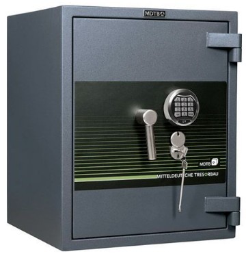 устойчивость к взлому: класс 4 в системе ECB-S (Европейский орган сертификации - DAkkS (Германия) для сейфов, поставляемых в Европу, сертификат № 1506/SA15-03 от 23/09/2015 и 4 класс по стандарту ГОСТ Р 50862-2012 в системе сертификации (Российский орган сертификации АНО РСБ-С) для сейфов, поставляемых в Россию при заливке двери и корпуса используется запатентованная система высокопрочного армированного бетона 3-х сторонняя усиленная ригельная система запирания сплошной пассивный ригель, залитый бетоном защита замков и ригелей от высверливания, выжигания и выбивания защита ригельного механизма каленым стеклом система блокировки ригельного механизма при выбивании замка защита от выдавливания двери гидравлическим инструментом защита двери от выжигания, выбивания и демонтажа замка толщина защитного слоя двери – 45 мм, общая толщина двери - 124 мм толщина боковых стенок - 55 мм комплектуются двумя ключевыми замками KABA MAUER (в комплекте по 2 ключа) наличие анкерного крепления к полу и стене. Анкерные болты в комплекте