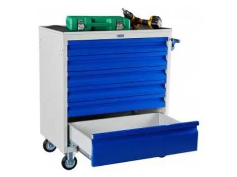 Предназначены для хранения и оперативного перемещения инструмента на производственных предприятиях, в автосервисах и ремонтных мастерских. Телескопические направляющие выдвижных ящиков, система полного выдвижения ящиков.Нагрузка на малый ящик 15 кг, на большой ящик 30 кг, и крышку тележки 40 кг
