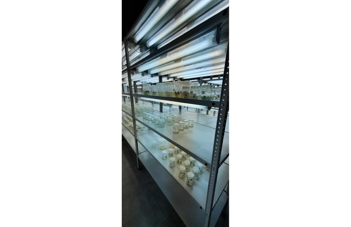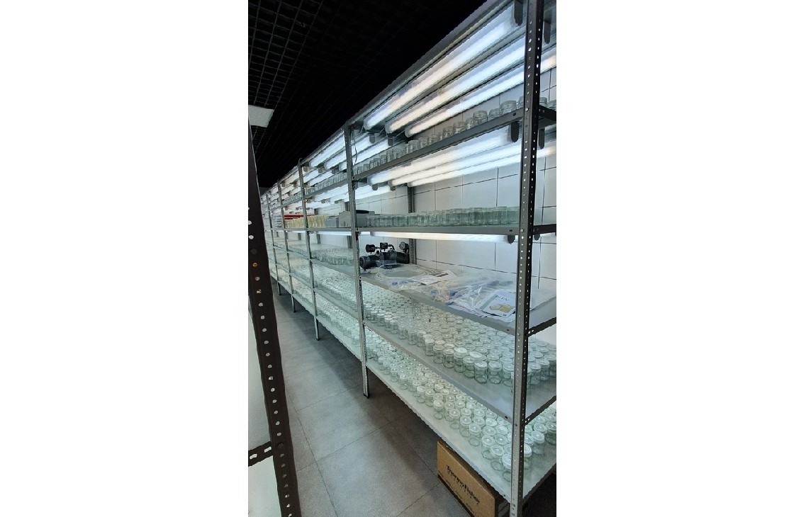 Спектр света люминесцентных ламп полностью устраивал Заказчика, за счет чего получилось добиться значительно меньшей стоимости проекта, сравнительно с фито-стеллажами
